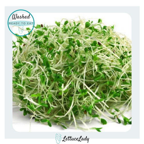 Alfalfa sprouts are yummy on sandwiches, burgers, pizzas. For some added texture, vitamins, and nutrients mix in with your salad ( LettuceLady Mixed Greens with Arugula - PERFECT MATCH ) You may sprinkle over an omelette and you can even add them to a smoothie.